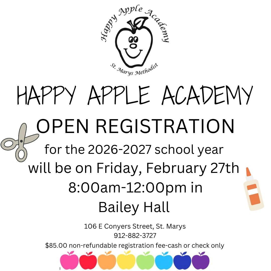 Happy Apple Academy is the preschool ministry of St. Marys Methodist Church. Our program encompasses the highest standards in early childhood education within a Christian environment of love and support. We have been a ministry of the St. Marys Methodist Church since 1981.